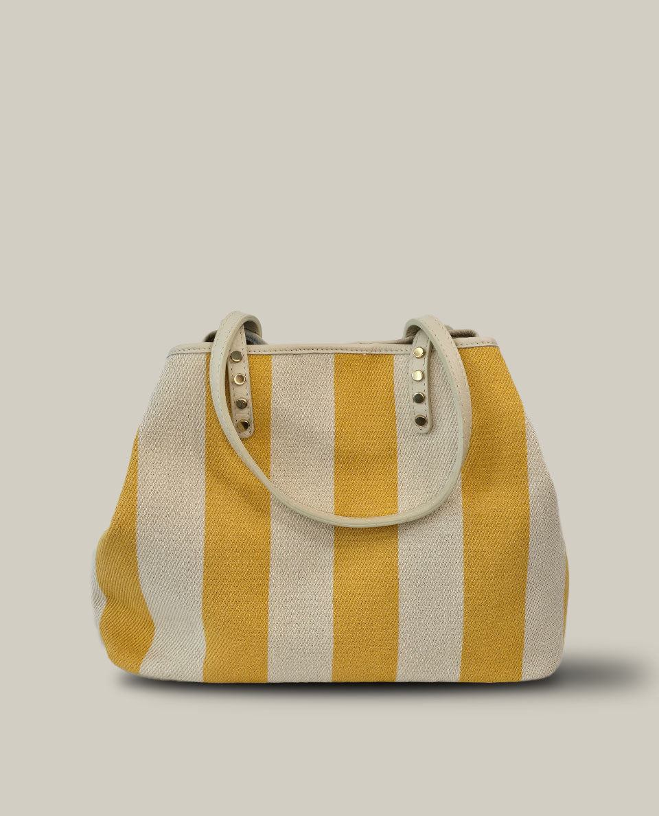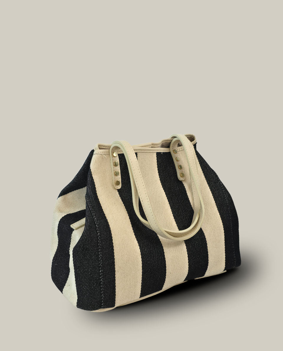 - Premium Canvas Construction: The body is crafted from high-quality woven canvas with alternating vertical stripes, exuding a fresh and luxurious aesthetic.