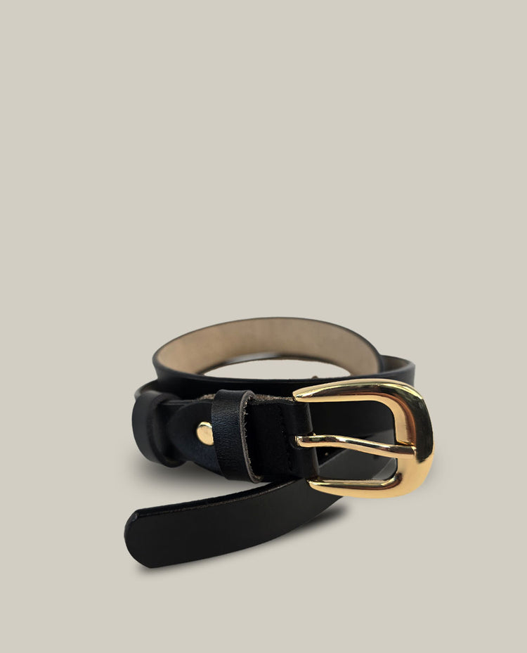 The Delia Belt is the perfect travel companion—lightweight, stylish, and versatile enough to elevate any outfit. Designed for the modern explorer, this belt is crafted from genuine Vera Pelle leather, ensuring durability without unnecessary bulk. The sleek black leather strap is complemented by a gold-tone buckle, offering a refined yet understated look that transitions effortlessly from casual to formal settings.