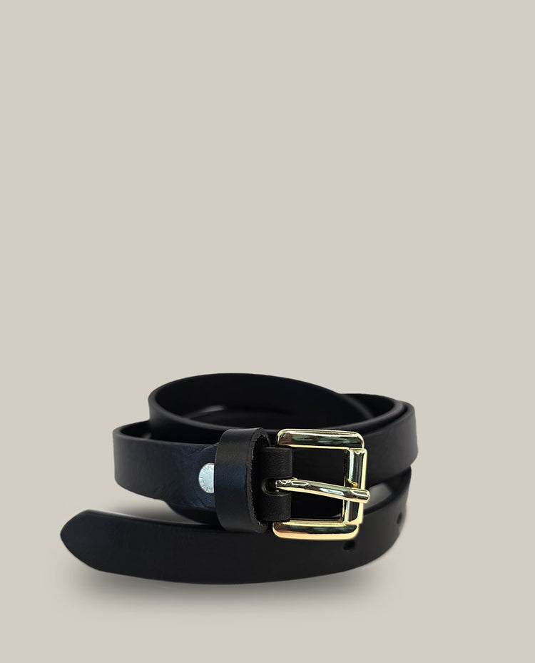 Featuring a polished gold-tone square buckle, Luna is designed to seamlessly transition between casual and formal wear. Available in classic Black and deep Chocolate, this versatile piece is perfect for cinching blazers, accentuating dresses, or adding a tailored touch to trousers.