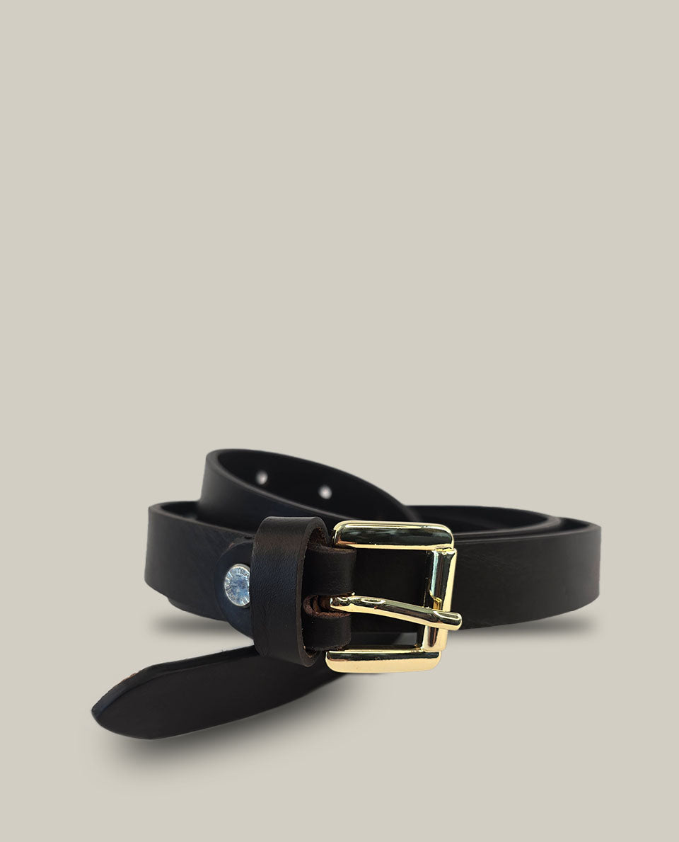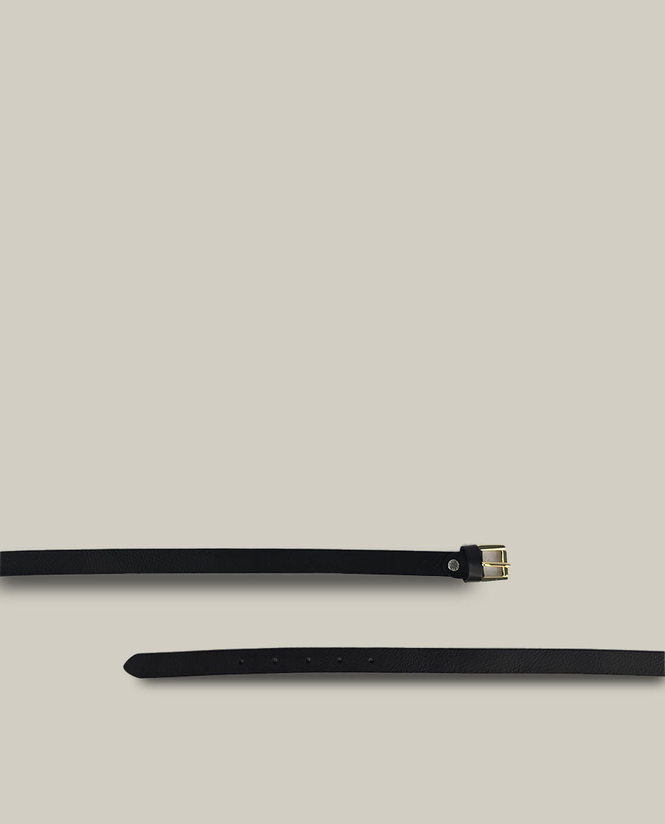 Featuring a polished gold-tone square buckle, Luna is designed to seamlessly transition between casual and formal wear. Available in classic Black and deep Chocolate, this versatile piece is perfect for cinching blazers, accentuating dresses, or adding a tailored touch to trousers.