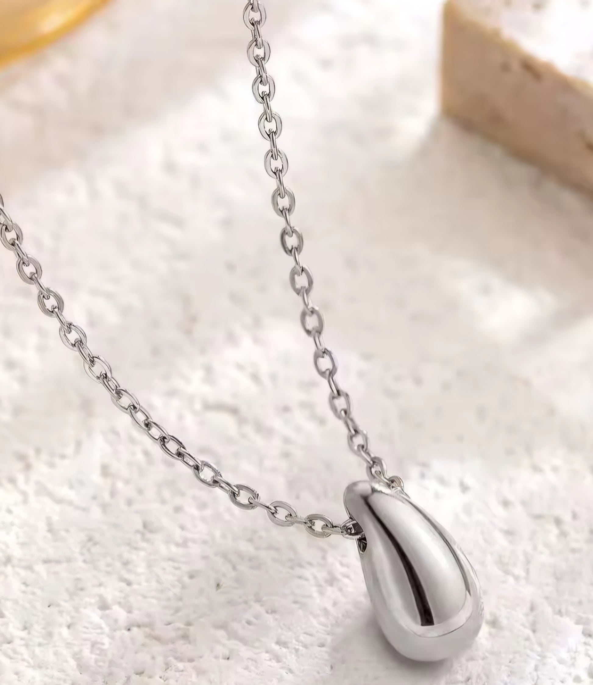 Refined simplicity meets organic beauty in the Natalia Necklace, a delicate piece designed to capture the essence of effortless grace. Suspended from a fine chain, its smooth, teardrop-shaped pendant exudes fluid elegance, offering a soft yet striking focal point.