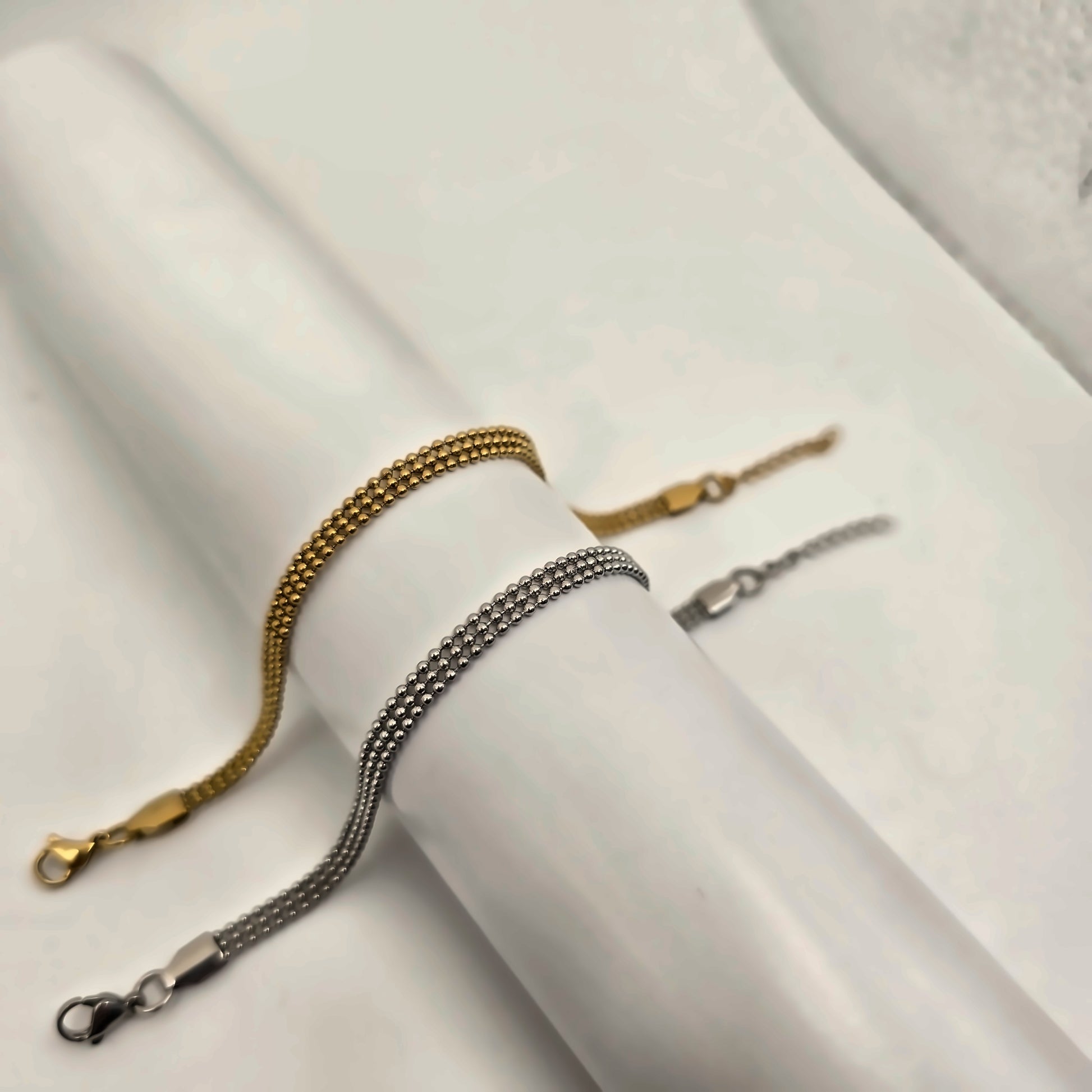 Crafted with premium stainless steel and real gold PVD plating, this exquisite bracelet is designed for durability, waterproof performance, and resistance to tarnish. Both the silver and gold remain vibrant for up to two years, ensuring long-lasting beauty.