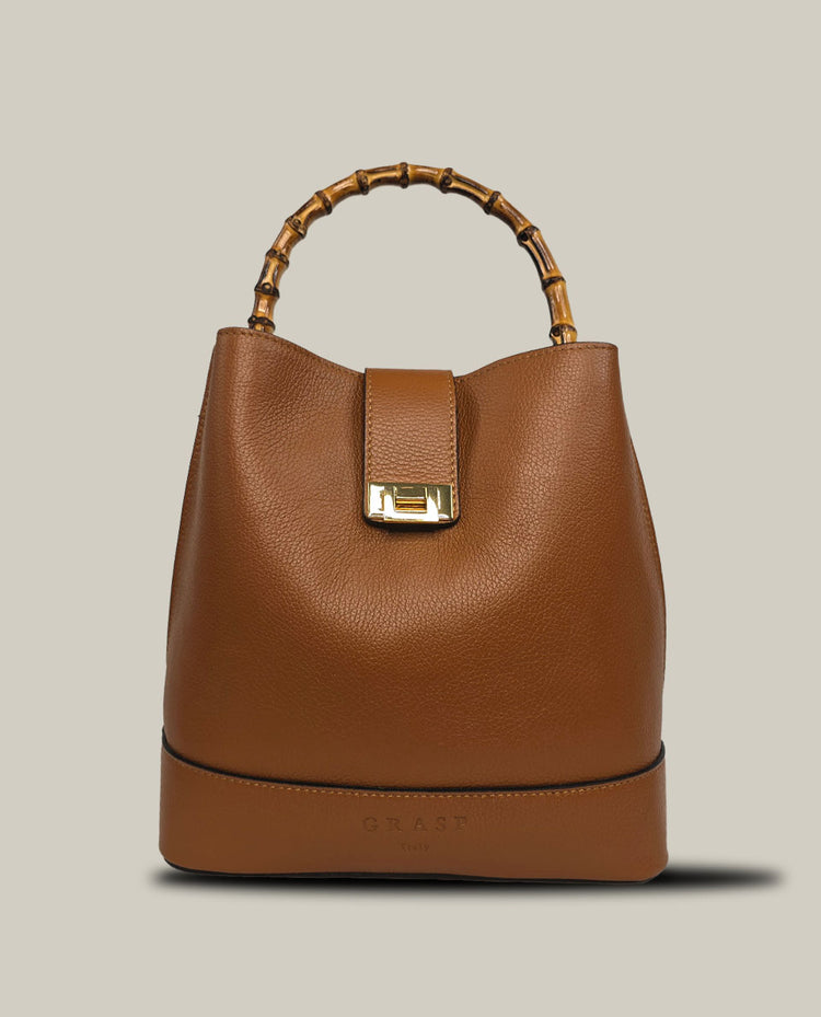 • Can be carried as a handbag using the bamboo handle or paired with an optional gold chain and leather shoulder strap for added versatility.